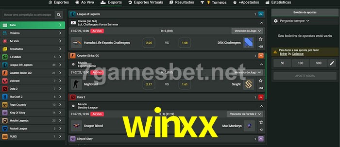 O winxx oferece uma grande seleção de opções de apostas em e-sports com probabilidades competitivas